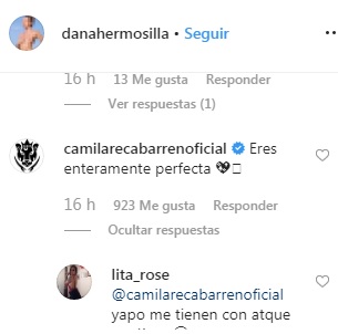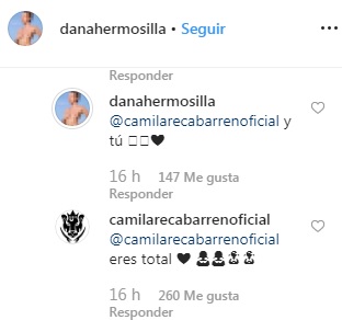 «No busco mi otra mitad, porque no soy una mitad» escribió recientemente Dana en una publicación en su cuenta de Instagram. A lo que Camila rápidamente le respondió: «Eres enteramente perfecta».