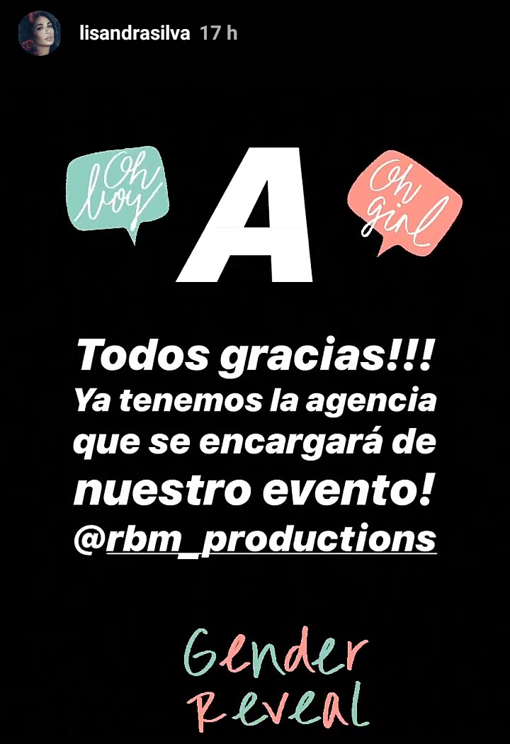 Es más, este lunes Lisandra le pidió ayuda a todos sus seguidores a través de las Historias de Instagram, pues quiere revelar el sexo del bebé con una fiesta.