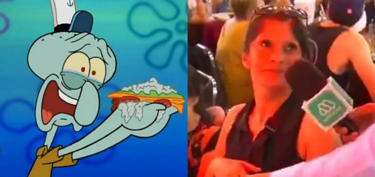 Fue en este contexto que durante un despacho de Meganoticias entrevistaron a una mujer que estaba comiendo en el centrado, quien al dar los ingredientes de su plato se equivocó y nombró a uno de los personajes principales de Bob Esponja.