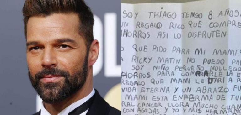 «Hola. Soy Thiago tengo 8 años. Traje un regalo rico que compré con mis ahorros así lo disfrutan. Lo único que pido para mi mami que conozca a Ricky Martin» comenzó escribiendo el niño en la carta.