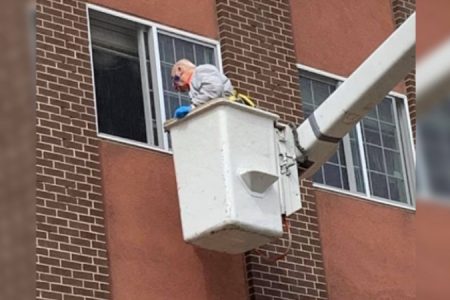 En viral se convirtió el romántico gesto de un hombre de 88 años con su esposa, quien luego de estar sin poder verla por más de un mes, decidió utilizar una grúa para visitarla por la ventana.