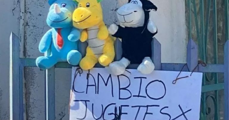«Cambio juguetes por despensa. Queremos ayudar a mi mamá», decía el cartel junto a los juguetes en la reja de la casa. Las imágenes llegaron a las redes sociales, lo que hizo que no sólo sus vecinos lo ayudaran, sino que además personas de distintas partes de la ciudad ubicaron la casa y fueron a dejarles comida.