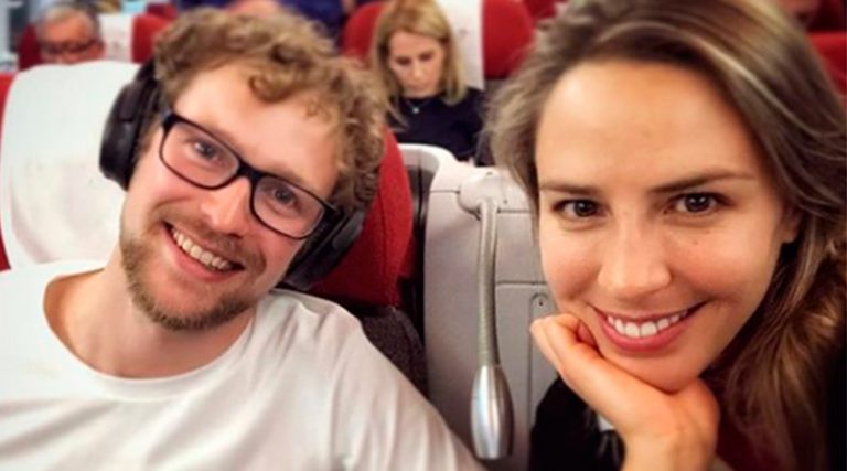 La ex ‘Calle 7’ compartió dos bellas fotitos donde aparece en compañía de su pololo, el inglés Jonathan Lawn, además de su cachupín Kitito, mientras muestra un pequeño enterito blanco de guagua.