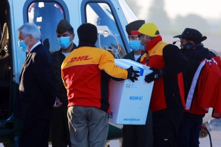 Dichas vacunas, procedentes de Bélgica, fueron recibidas por Sebastián Piñera, el ministro de Salud Enrique París, el ministro de Ciencias Andrés Couve y el canciller Andrés Allamand.