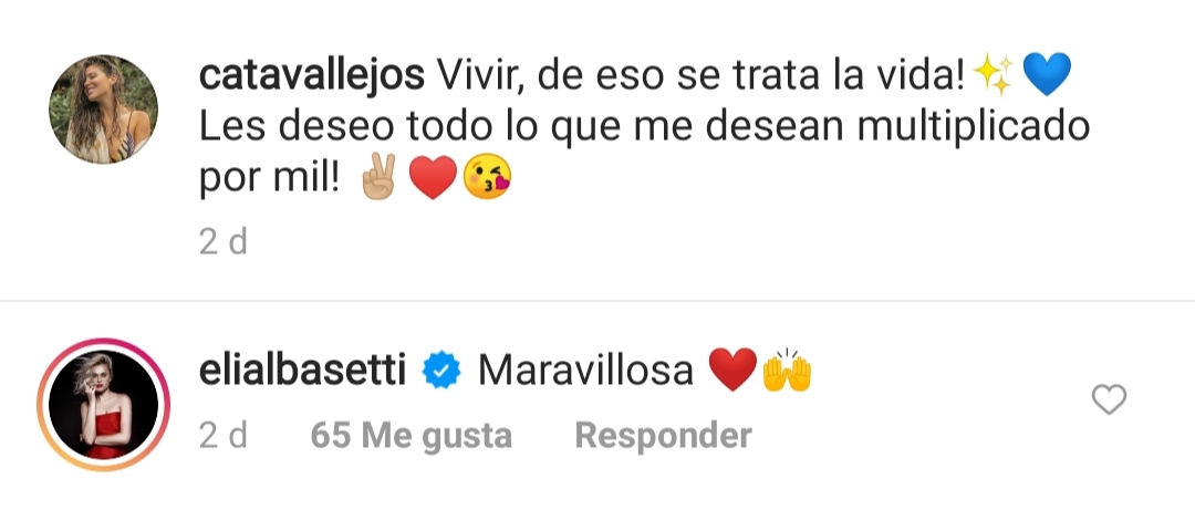 Aquí es donde aparece Eliana Albasetti, quien le comentó a su ex compañera de tv: «Maravillosa». Situación que molestó a los usuarios de redes sociales, quienes le escribieron: «la defensora de animales pero incocencuente con el ser humano» y «se fue a vivir a Peru, pero ahora está en Colombia… mmm si po, super responsable».