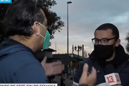 «Te pondremos música para la alegría, qué fome. Canal 13 comunista, fome», dijo el individuo, descolocando a Collao quien le ofrece hablar con él.