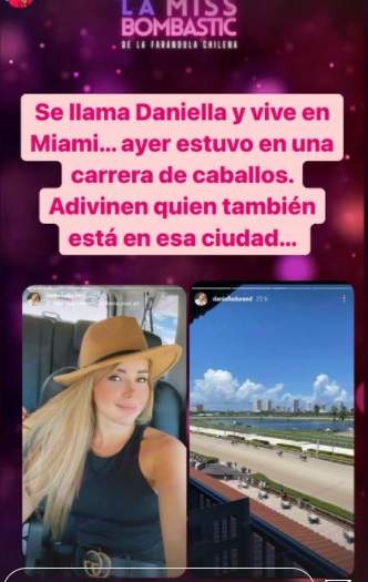 Junto con agregar que: «Se llama Daniella y vive en Miami… Ayer estuvo en una carrera de caballos. Adivinen quién también está en esa ciudad… Y estuvieron juntos visitando a los caballitos» publicando fotos de la joven y Vidal junto a unos caballos.