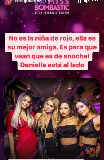 «Y para que después no me salgan con el típico ‘no nos conocemos’» escribió Gutiérrez al compartir una postal del King en una fiesta junto a una joven, quien sería amiga de Daniella. Pues después compartió otra postal en la que aparecen ambas en el mismo lugar, con la misma ropa y en la misma noche.