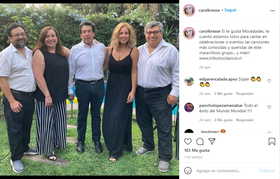 Para comenzar, señaló que actualmente «tengo un grupo tributo a Mocedades donde cantamos villancicos en navidad, armamos la banda con un grupo de amigos de hace años y hoy estamos yendo a mil cosas, por lo general a cumpleaños de adultos o aniversarios de matrimonios».