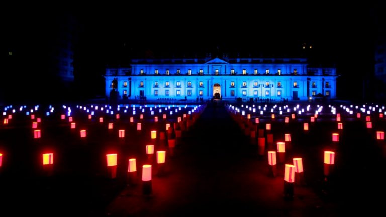 Tras el cierre de su discurso, se encendieron un total de 460 luces en la Plaza de la Ciudadanía, esto en homenaje a las 36 mil víctimas fatales, las cuales aumentan a más de 45 mil de acuerdo a las cifras del DEIS, producto de la pandemia.