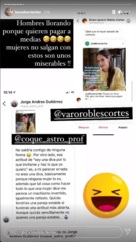Rápidamente estos dichos se volvieron virales, generando cientos de comentarios sobre la posición de Adriana; y al parecer muchos indignados partieron a dejarle feos mensajes en su cuenta de Instagram, por lo que la Leona decidió exponer a algunos de ellos.
