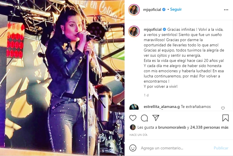 Tras este primer mensaje, María José hizo una nueva publicación, luego de una exitosa presentación en Colina, donde aprovechó de agradecer a todos sus fanáticos por estar ahí apoyándola nuevamente.