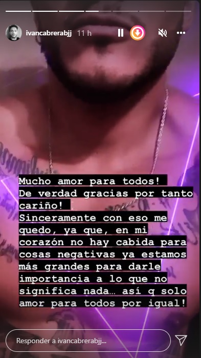 «Mucho amor para todos. De verdad gracias por tanto cariño. Sinceramente con eso me quedo, ya que en mi corazón no hay cabida para cosas negativas, ya estamos grandes para darle importancia a lo que no significa nada. Así que solo amor para todos por igual», escribió esta mañana en Instagram Iván Cabrera.