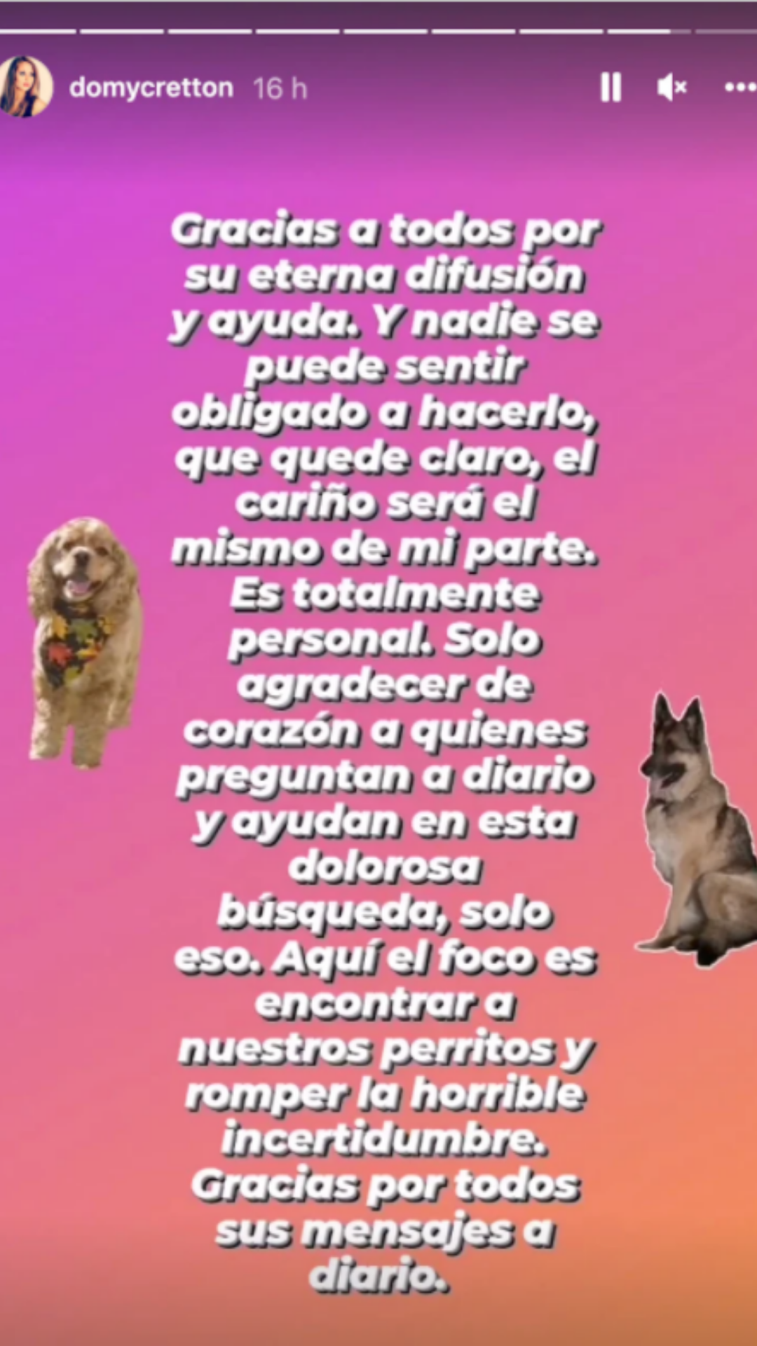 La hermana del popular animador de televisión y cantante Jean Phillippe Cretton, Dominique, está desesperada. Todo luego de que se le perdieran sus mascotas Danke y Thiare; lo que ha provocado que comparta historias en sus redes sociales para encontrarlas.