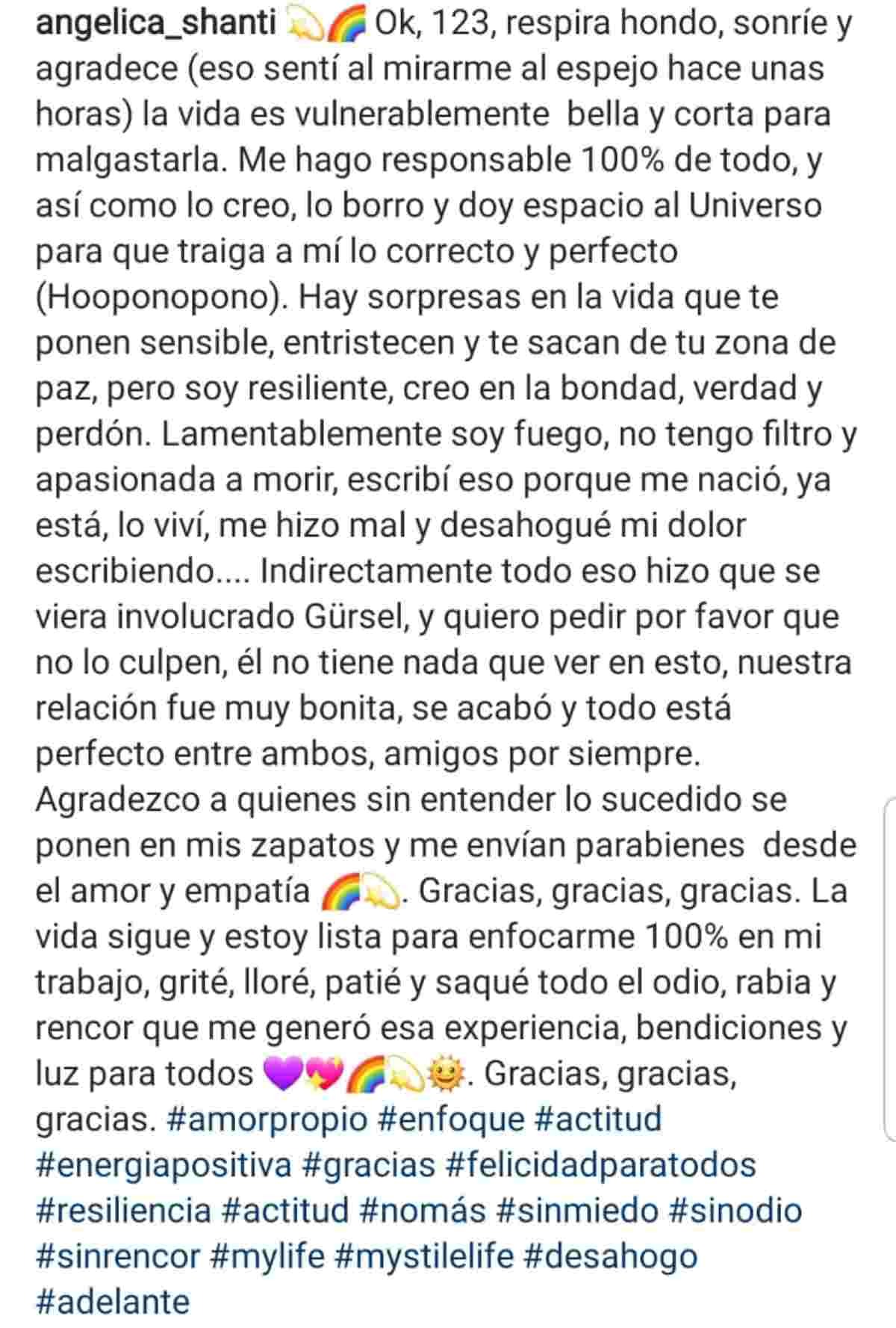 A raíz de la gran cantidad de reacciones que comenzó a recibir en sus redes sociales, Angélica Sepúlveda finalmente optó por salir a explicar un poco más en Instagram sobre los detalles de su quiebre.