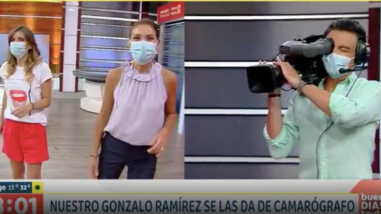 Gonzalo comenzó a caminar por el estudio de la estación estatal, acercándose hacia sus compañeras con una gran cámara entre sus hombros y con audífonos para a la vez grabarlas en vivo a las animadores del programa.