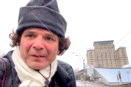 «Acá vienen los militares de nuevo y ahora vienen muy agresivos (…) ¿Me esperan un poquito? Están apuntándome» indicó el periodista en vivo mientras recorría la capital Kiev.