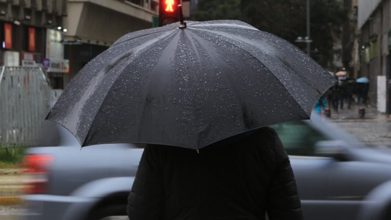 Según lo dado a conocer por la Dirección Meteorológica de Chile, la lluvia en la capital comenzará en la tarde. De esa forma, se esperaba que originalmente entre las 13:00 y 14:00 horas cayeran las primeras gotas. Pese a esto, no será hasta alrededor de las 18:00 horas que comenzará el sistema frontal real.