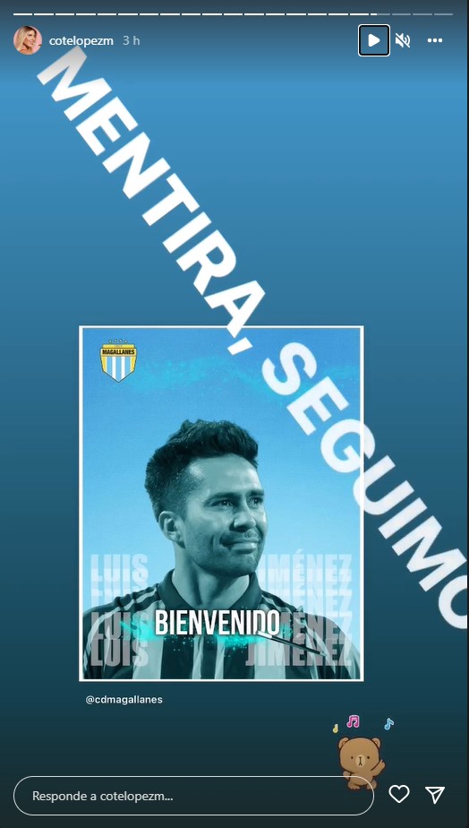 Y una que no dudó en reaccionar al regreso de su marido fue Coté López. Pues la empresaria de inmediato compartió en Instagram la publicación del nuevo equipo de su marido, la que simplemente acompañó con una canción.