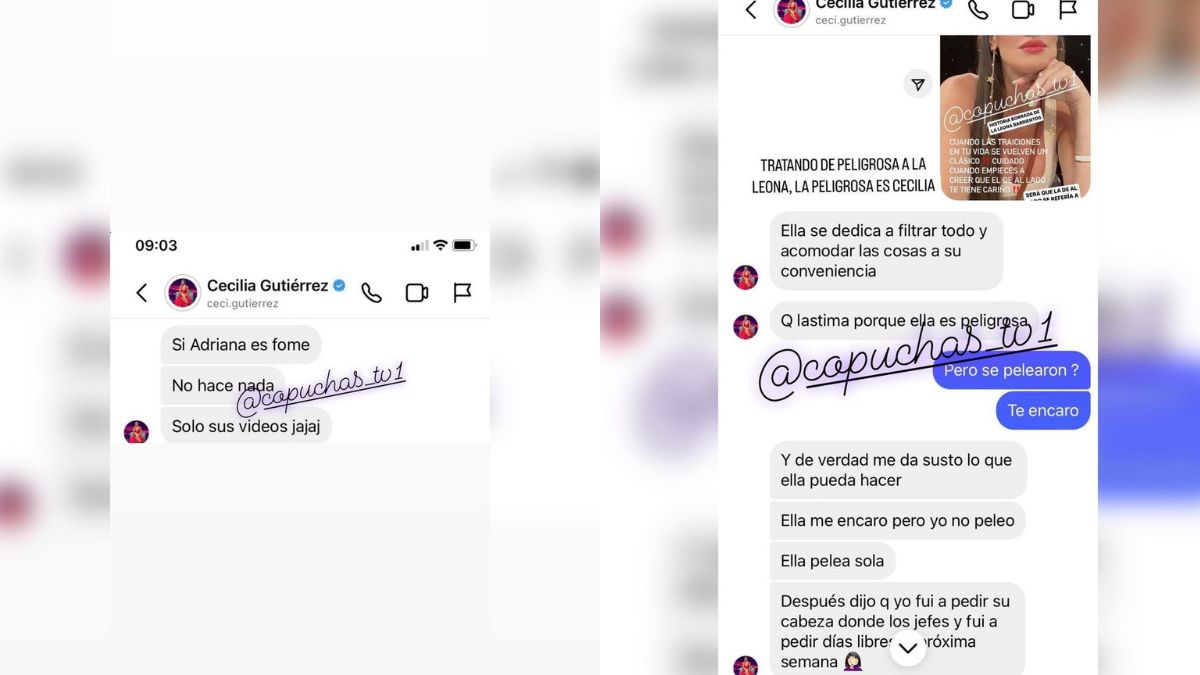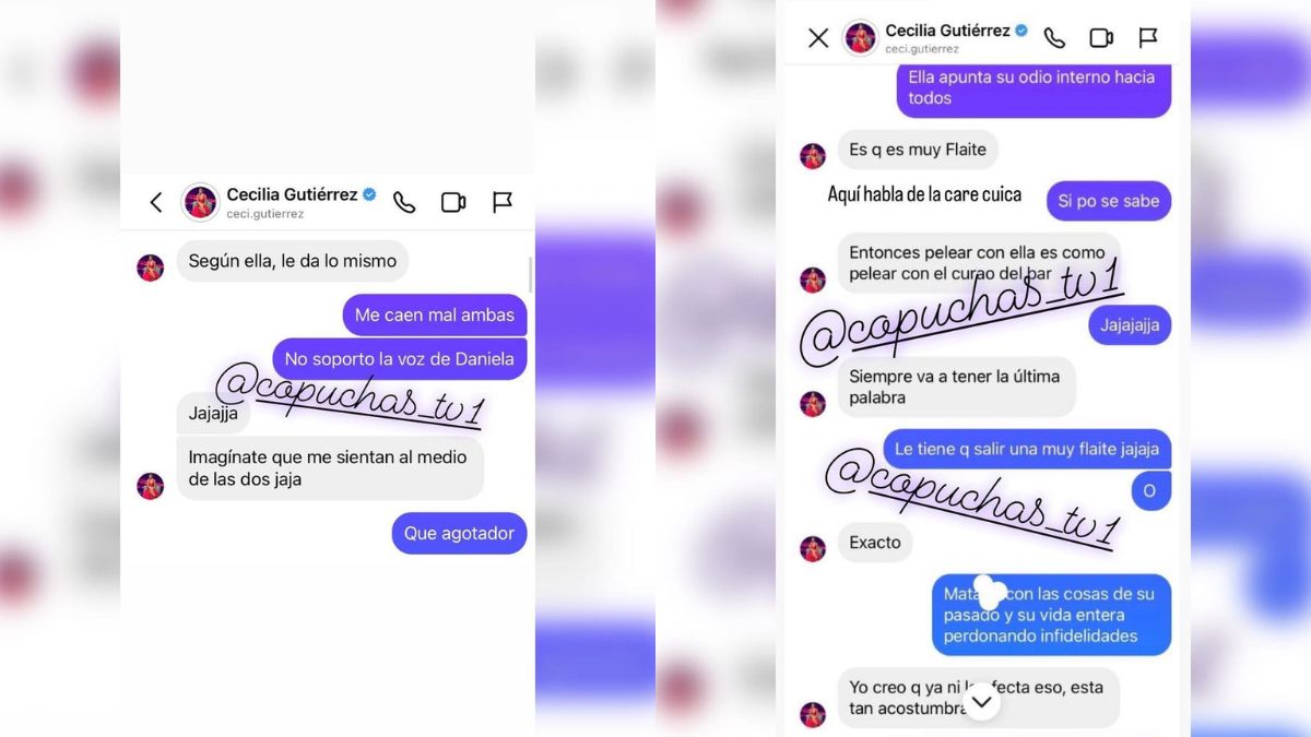 Resulta que la cuenta de Instagram ‘Copuchas TV’, reveló las conversaciones de Cecilia Gutiérrez, las que llamaron la atención del público, pues a pesar de que se sabía de su mala onda con Adriana Barrientos, no estaban al tanto de la situación con Daniela Aránguiz.