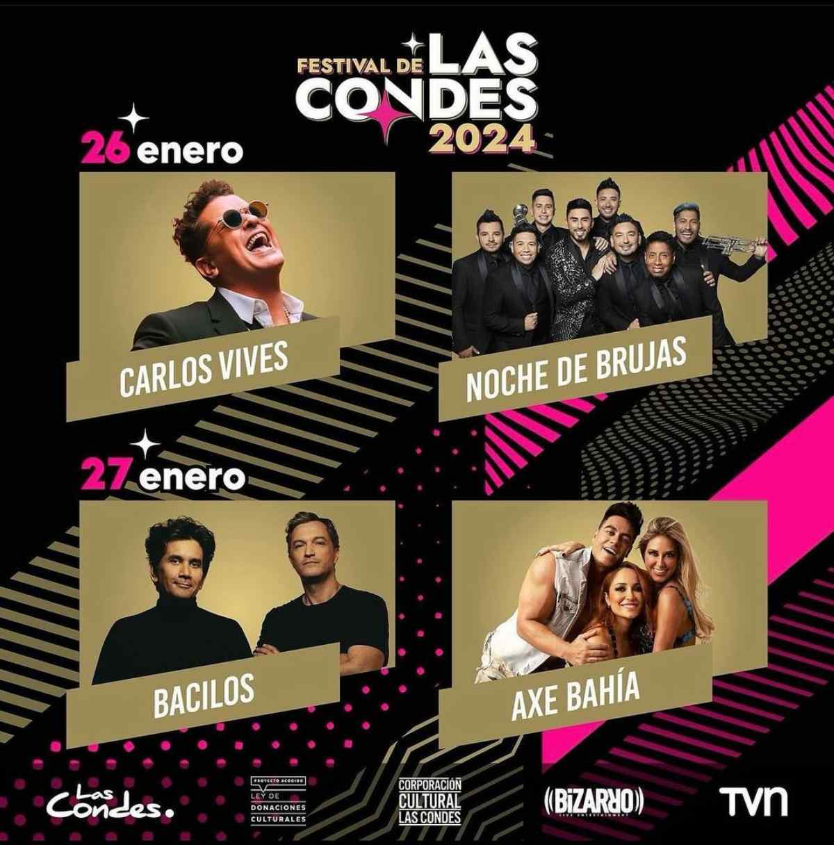 La parrilla de esta noche está conformada por el romántico artista colombiano Carlos Vives. Quien abre el escenario para la icónica humorista Gaby del Río y para el amado conjunto chileno Noche de Brujas.