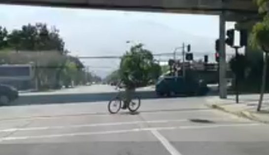 Cachen! ciclista se salvó por poquito