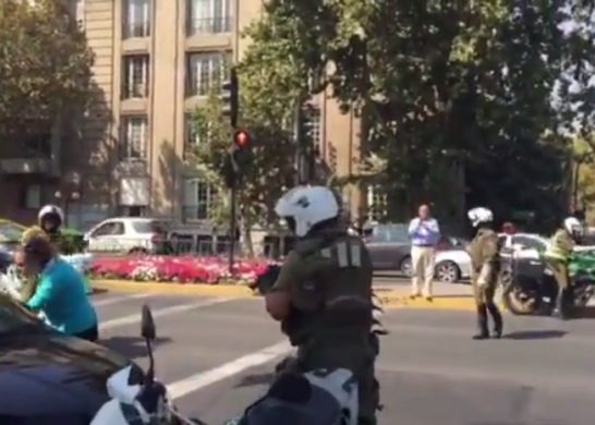 Carabinero se va en volá y saca pistola en protesta de taxistas